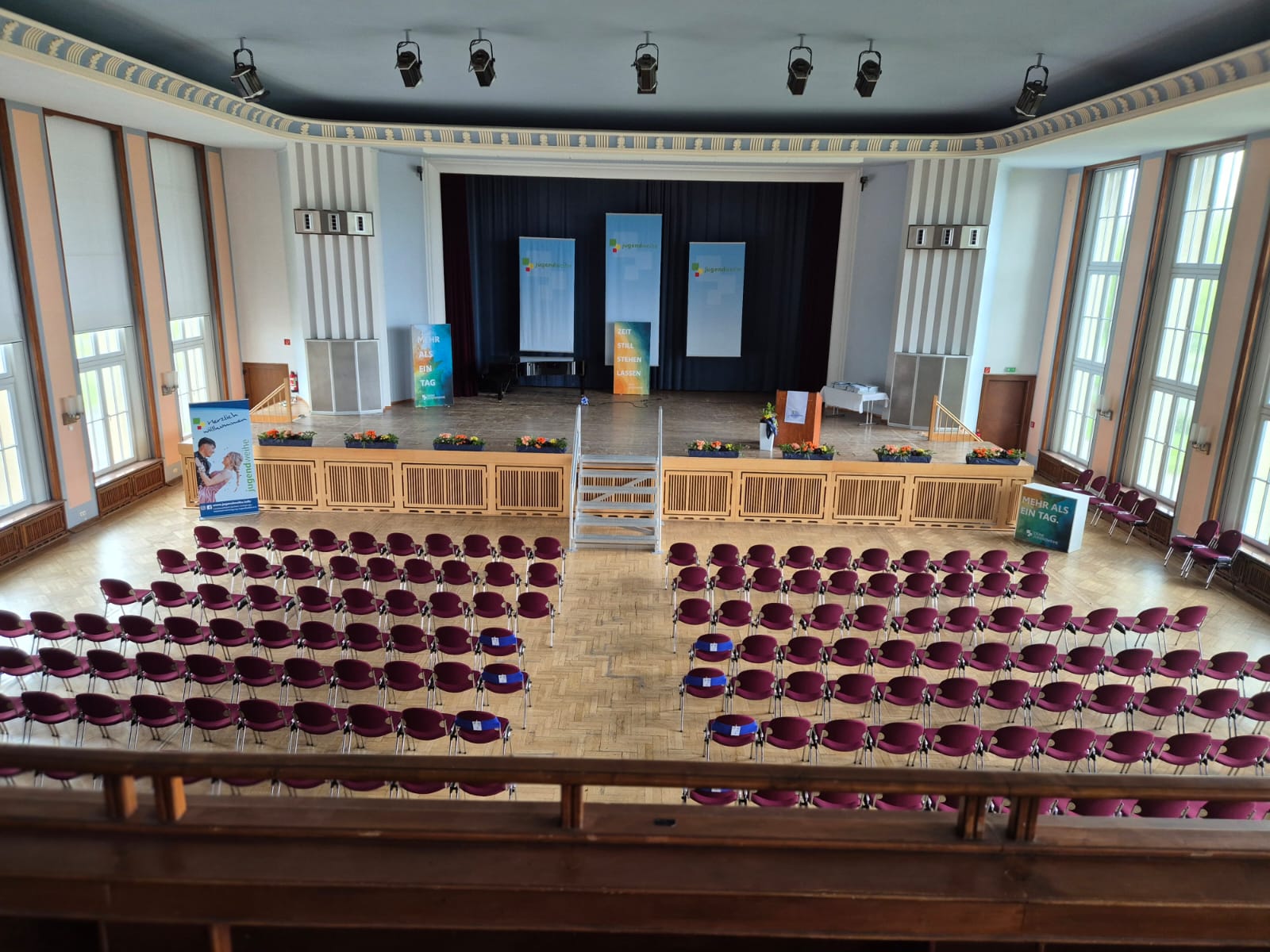 Herzstück der Location sind der große Festsaal mit Bühne, die Wandelhalle, das Hauptfoyer und mehrere Club- und Konferenzräume. Vom Foyer aus erschließen sich alle wichtigen Bereiche – perfekt für Konzerte, Tagungen, Messen, Firmenfeiern und private Feste. So können Sie je nach Format einzelne Räume oder das gesamte Haus nutzen.