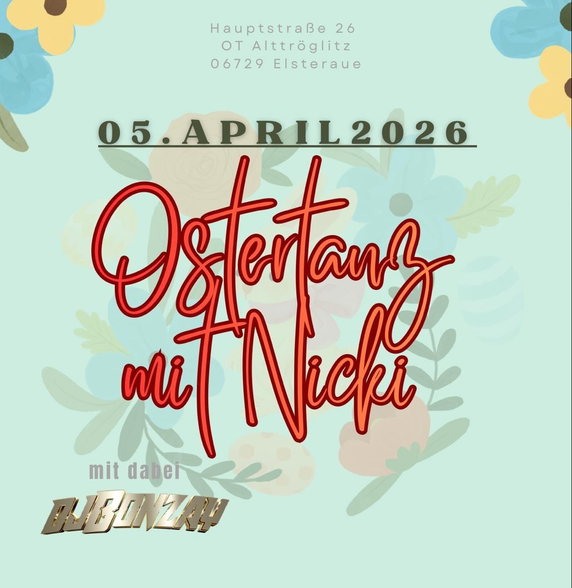 Ostertanz mit Nicki – die Party für alle ab 16 Jahren! Gute Musik, ausgelassene Stimmung und gemeinsames Tanzen in entspannter Oster-Atmosphäre.